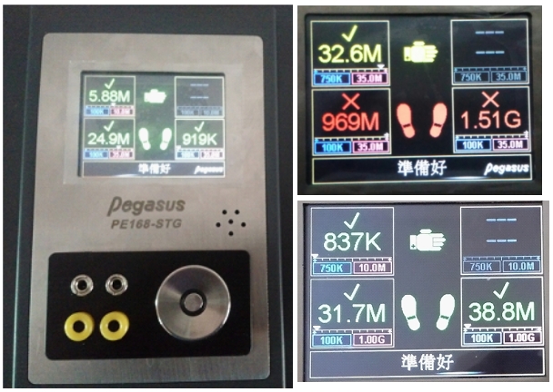 9.自備LCD觸摸屏,管理者可使用密碼輕松設(shè)定ESD阻值標(biāo)準(zhǔn)及近失效提醒阻值標(biāo)準(zhǔn)。LCD屏上可顯示設(shè)置好的阻值標(biāo)準(zhǔn),方便使用人員知道目前使用阻值高低標(biāo)準(zhǔn)。設(shè)定好的阻值會(huì)顯示在液晶屏小方格內(nèi),管理者能很清晰的知道目前已設(shè)定的阻值 (藍(lán)色字體為低端阻值標(biāo)準(zhǔn),紅色字體為高端阻值標(biāo)準(zhǔn))